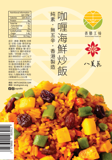 由八美花及 善膳工坊 團隊精心設計食譜,你將享受到100%純植物製造無五辛、「海鮮」與咖喱的絕配滋味,足料大份,飽足感滿分!