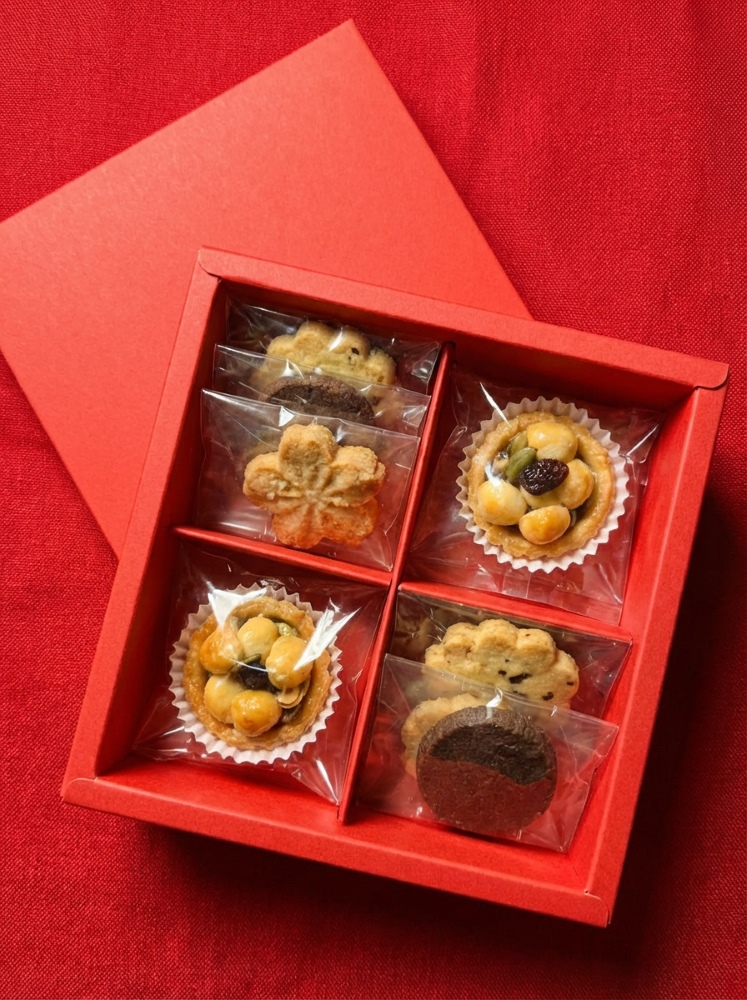 曲奇代表甜蜜團圓,堅果撻寓意堅實好運、財源廣進。無論自家享用、拜年送禮、公司派對,或給素食親友,都讓新一年從一口純淨甜點開始,風生水起!